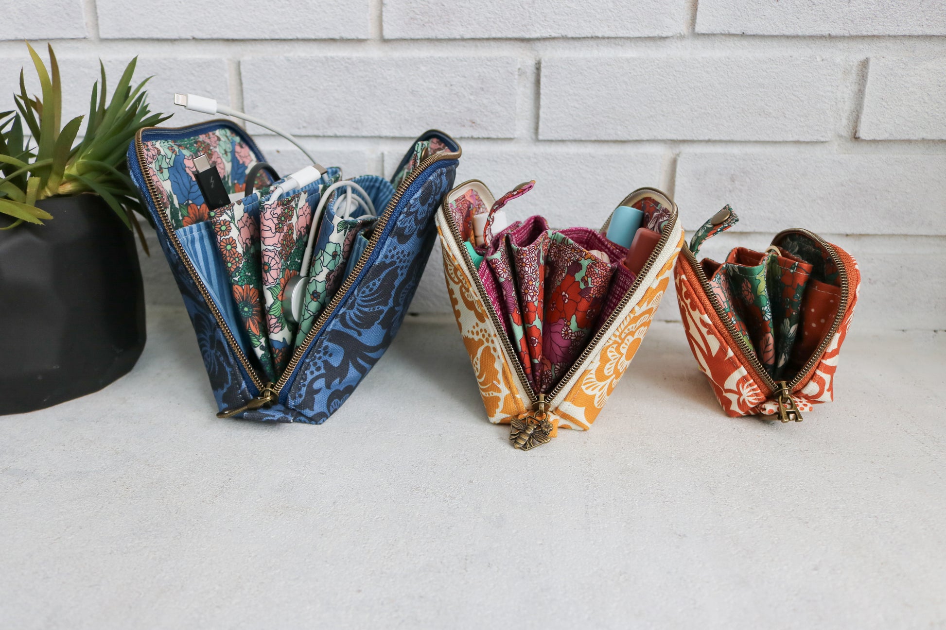 The Honeycomb  Case is a slim organizer that is packed with pockets! The exterior is smooth and sleek, but then you open it up to find free-standing slots that are ready for your favorite accessories.  This case comes in three different sizes -- small enough for your delicate jewelry and also large enough to handle all of your tech gear.  The wide double-zipper compartment allows you to see everything inside and stay organized. With additional pocket options, you can use these cases for makeup, journaling supplies, and of course, lots of fiber notions. For a different look, the center slots can be completely omitted to make a full set of nesting cases.