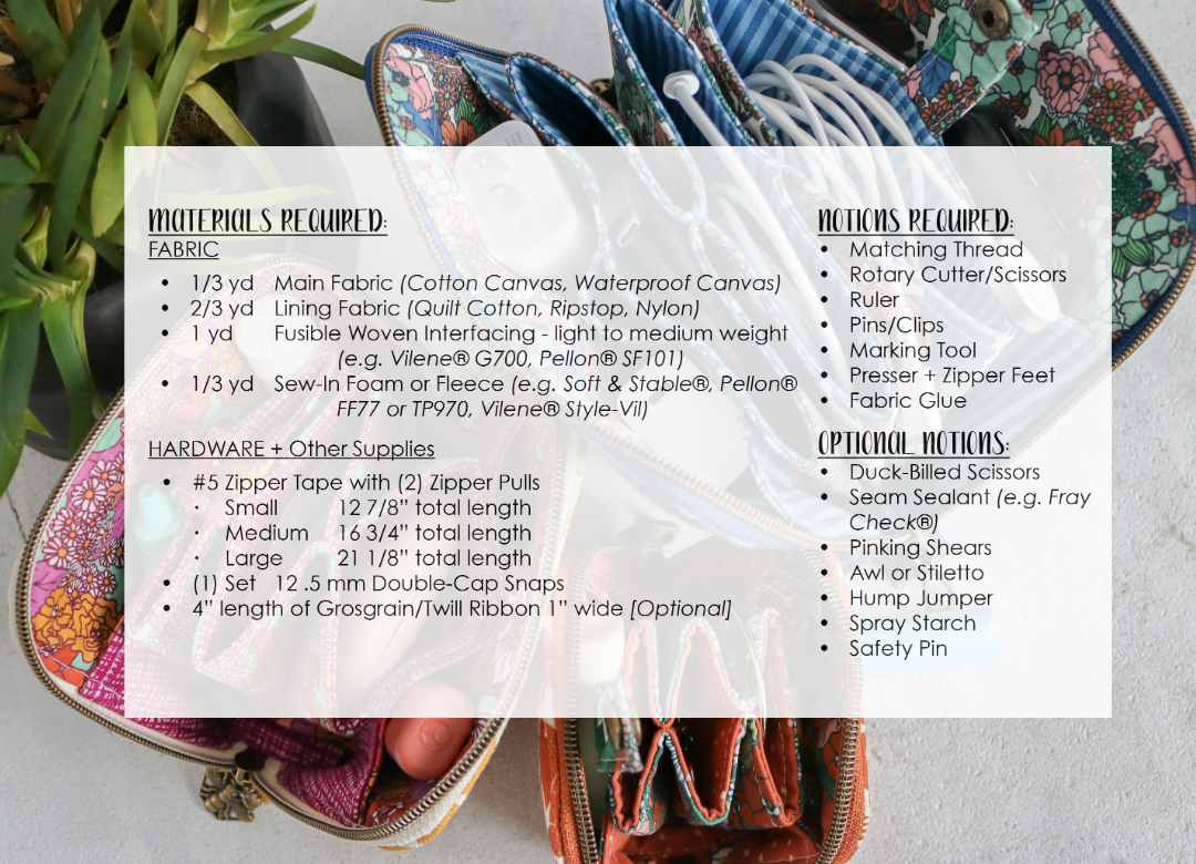 DIFFICULTY: Experienced Beginner - You have some experience sewing curves and installing zippers on curves.  You are familiar with bulky seams, can install a snap, and understand basic bag-making terminology.