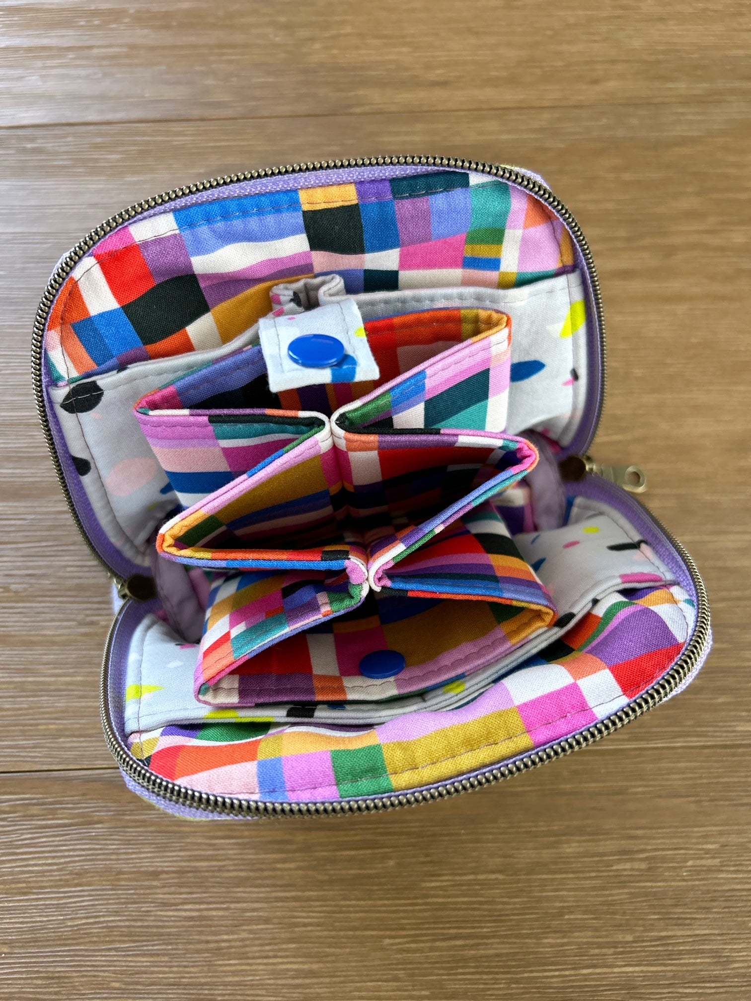 In this pattern, you will learn how to install a zipper around curves with a clean interior finish.  You will also discover how to make the namesake’s honeycomb slots and create two other pocket styles that can be mixed and matched.  Included are different techniques and tricks to help handle fabric bulk with a domestic machine.